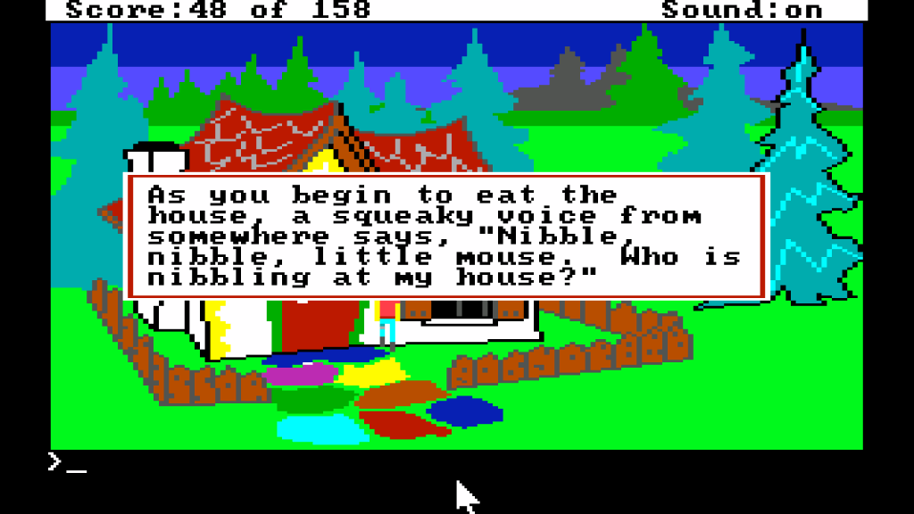 Der erste von 158 möglichen Punkten ist verdient. Denn King’s Quest kann nicht nur abgeschlossen, sondern auch besonders gut gelöst werden. Mit einem Punktestand als Indikator, der als ein Anreiz für das wiederholte Durchspielen und Erkunden gedacht war. Wer mehr zu den Hintergründen, der Motivation und der Entstehungsgeschichte King’s Quests erfahren möchte, der möge sich unbedingt den oben genannten Podcast anhören.